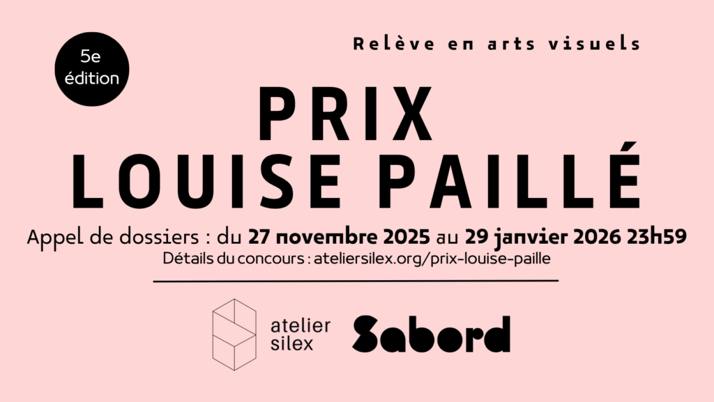 Le Sabord et l'Atelier Silex sont heureux de lancer la 𝟓𝐞 𝐞́𝐝𝐢𝐭𝐢𝐨𝐧 𝐝𝐮 𝐏𝐫𝐢𝐱 𝐋𝐨𝐮𝐢𝐬𝐞 𝐏𝐚𝐢𝐥𝐥𝐞́, remis annuellement à un·e artiste en arts visuels de la relève du Québec pour une œuvre qui se démarque.